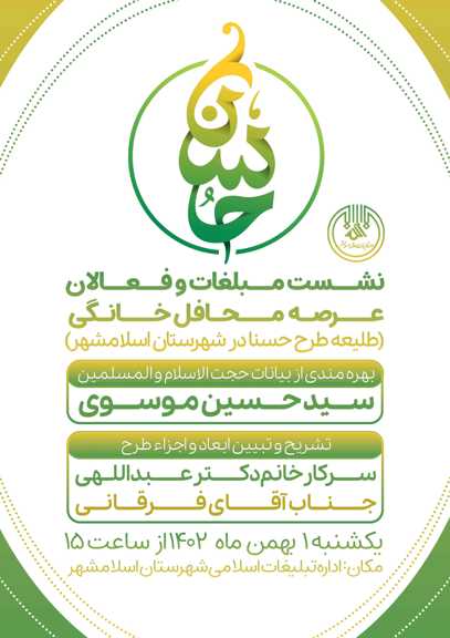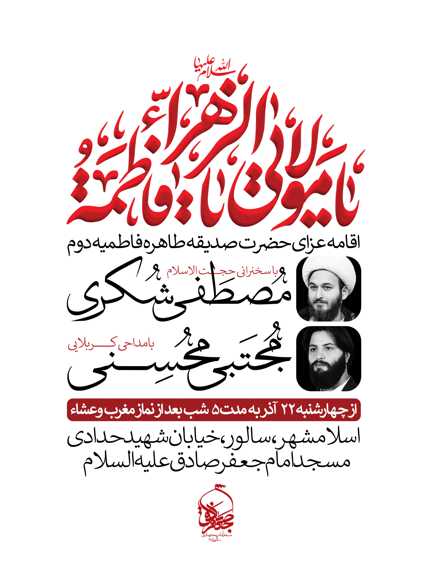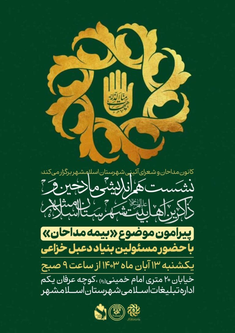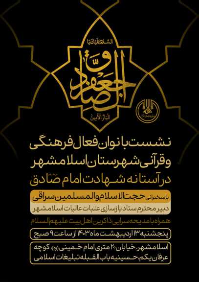 طراحی پوستر همایش هیئات مذهبی بانوان شهرستان اسلامشهر با سخنرانی دبیر جامعه ایمانی مشعر حاج رحیم آبفروش
