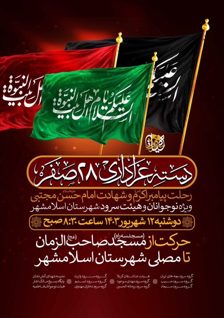 طراحی پوستر گردهمایی هیئات مذهبی شهرستان اسلامشهر با سخنرانی جناب آقای حسین حبیبی فرماندار اسلامشهر با نوای دلنشین داود علیزاده با قرائت استاد حمید رحیمی